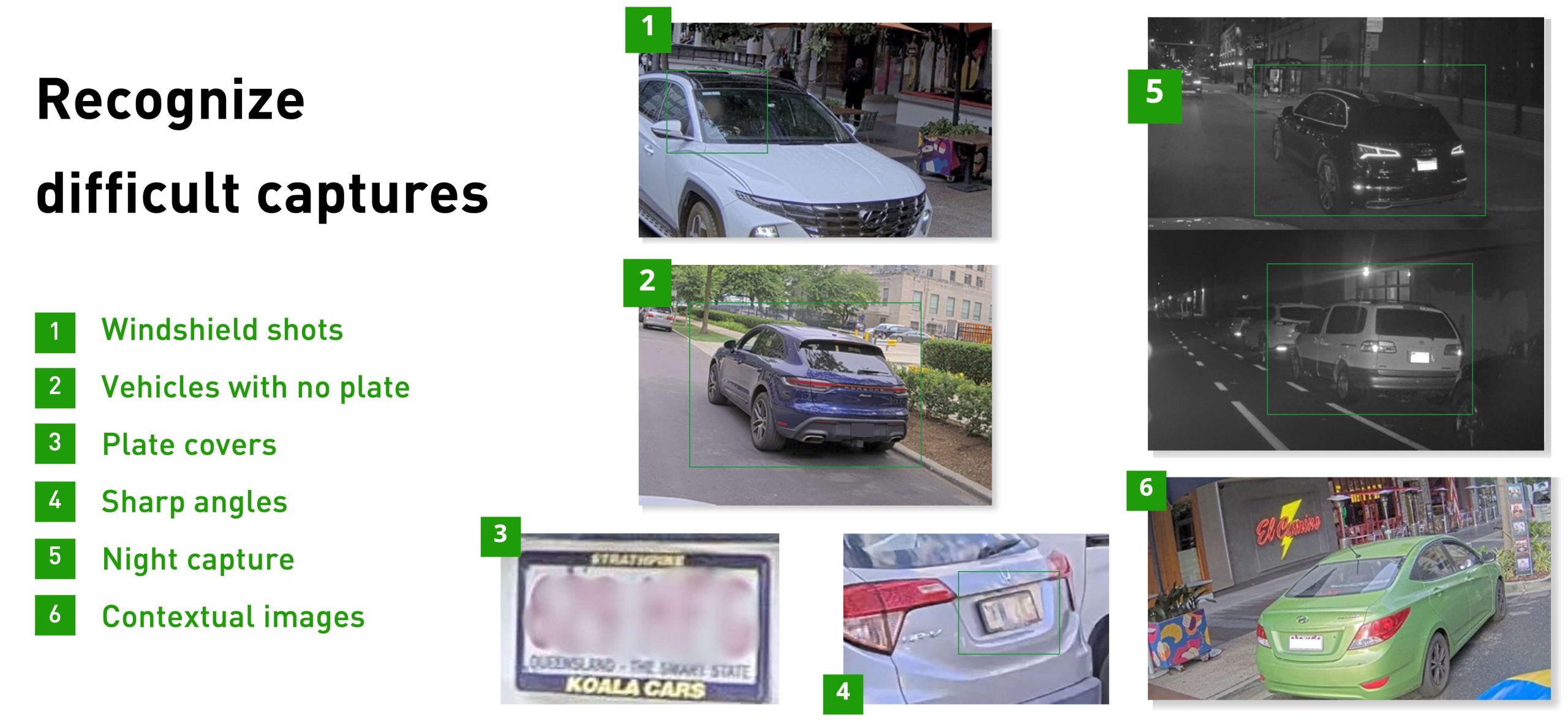Enhanced Evidence provides officers with a high-resolution virtual walk-around capability, supported by AI-enhanced regulation evidence, setting a new gold standard for enforcement documentation. This empowers officers to capture clear and detailed images of vehicle plates, even in unusually difficult conditions, such as low lighting, poor weather, extreme camera viewing angles, and obstructions with additional capabilities for collecting vehicle positional data e.g., GPS location, valve stem imagery. The feature also compiles contextual evidence, such as the vehicle’s surrounding background, and nearby parking signage, all linked to specific alerts.