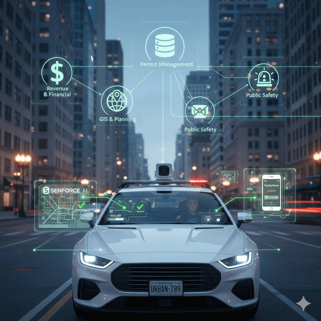Think of SenFORCE as the AI brain of your parking enforcement operations, meticulously gathering and analyzing data with unparalleled accuracy. This brain is designed to connect effortlessly with your city’s digital body, which includes: